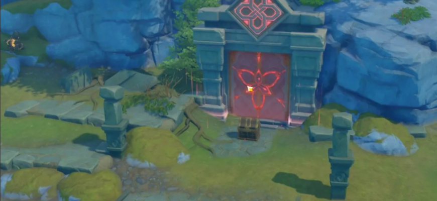Кристаллы запечатаны в темных камнях у воды и окружающих скал, найти их несложно, они отмечены желтым свечением. После того как кристаллы будут разбиты, возле персонажа появится огонек, который нужно поднести к алтарю. Когда все три алтаря будут зажжены, можно активировать переключатель, который снова снизит уровень воды. Так можно открыть храм тайшаньфу в геншин импакт.